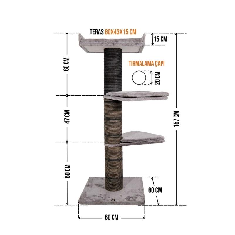 Tırmalama direklerinde kullanılan 6mm doğal jüt halat, masuralara her noktadan yapıştırılarak sağlamlık en üst düzeye çıkarılmıştır. Tırmalama direklerinin alt ve üst kapaklarında MDF kullanılmaktadır.