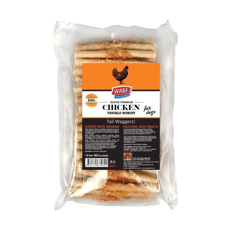 - Warf Naturals Tavuklu Munchy Sticks Doğal Yenilebilir Çiğneme Ödül Kemiği 11 gr x 60’lı